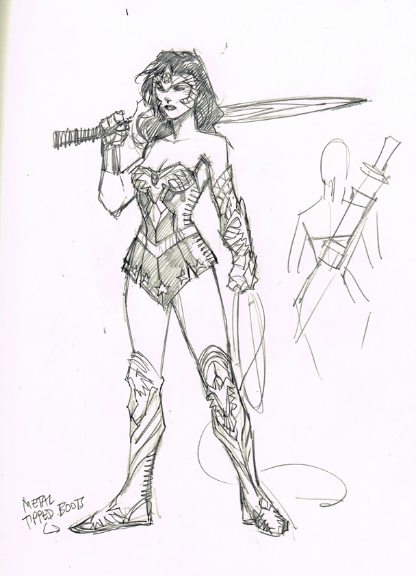Coming in May, DC COMICS-THE NEW 52 “Second Wave” will literally expand the world-building efforts of the comprehensive publishing initiative. With the addition of a parallel Earth that features prominently into both EARTH 2 and WORLDS’ FINEST, the developing narrative will encompass new heroes from distinctly different backgrounds, building on the shared universe in some surprising ways. “Due the events that open the saga of EARTH 2, Wonder Woman is already the last Amazon of this world and she is determined to avenge her sisters...at whatever cost,” said EARTH 2 writer James Robinson. "How did Wonder Woman come to be the last of the Amazons?" asks EARTH 2 editor Pat McCallum. "It's one of the mysteries we'll be getting into with the series. While there will be recognizable faces and settings on EARTH 2, don't for a moment think you're on familiar ground. Do that, and you let your guard down...and then you'll end up like the rest of the Amazons." Here’s a first look at the Wonder Woman of EARTH 2, designed by Jim Lee.