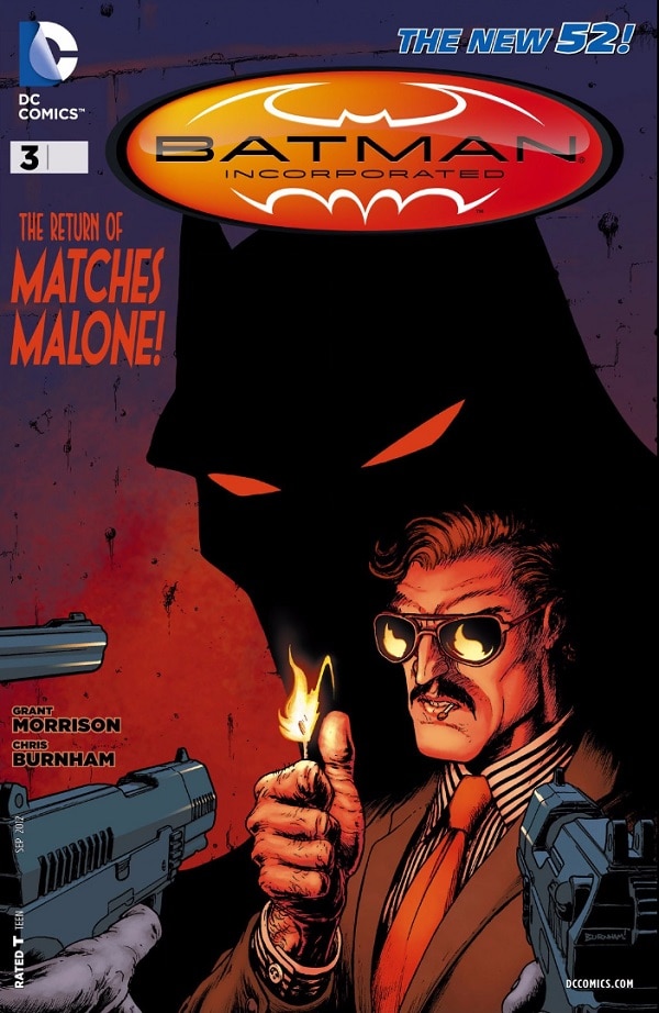 In the comics, Matches Malone was a small-time arsonist who first appeared in BATMAN #242. After his death, Bruce Wayne began using Matches Malone’s identity as a way to infiltrate and gain knowledge into the various Gotham criminal organizations that he would not otherwise be able to approach. Known for his sharp look of tinted glasses, mustache and trademark match clenched in his cheek, Matches is one of the few criminals that Batman believed wasn’t all that bad of a guy.
