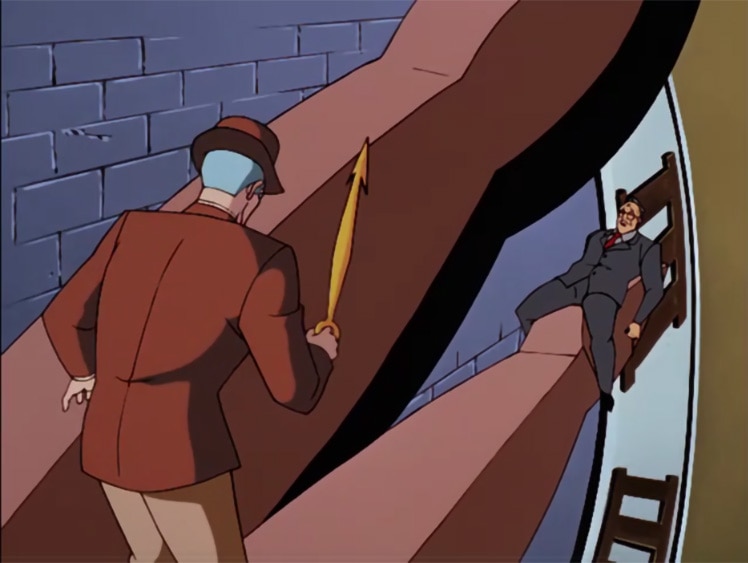 A fine logistics question. Let’s take a closer look at the death trap Clock King rigged up for Mayor Hill in his debut episode in the image above.