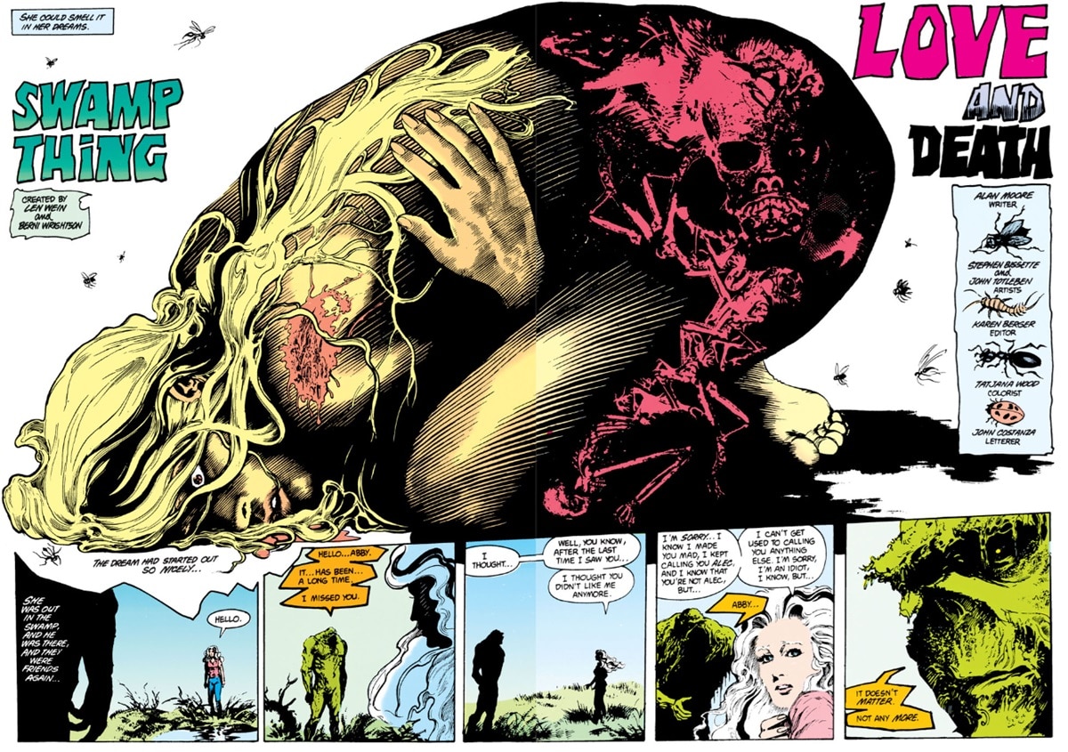 Swamp Thing: Love and Death by Alan Moore, Steve Bissette and John Totleben is available in bookstores, comic shops, libraries and digital retailers as a part of the Swamp Thing softcover collection. It can also be read in full on DC UNIVERSE INFINITE.