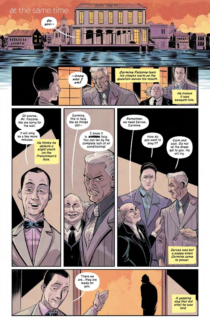 This is a profoundly personal heist for Selina, and she is ready to go to great lengths—maybe too far—to see it through. Her objective puts her at odds with Carmine Falcone, who, unbeknownst to Selina, is making big moves on his own. Neither is likely to walk away or back down, and only time will tell if they come out of it unscathed.