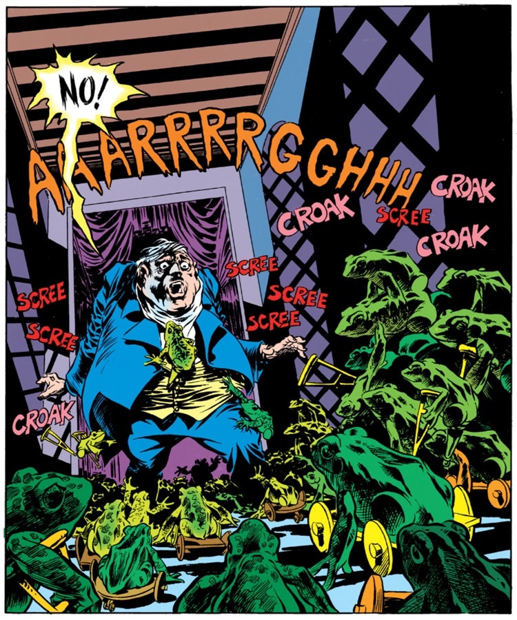 Wrightson’s most fondly remembered tale may be “The Gourmet”—written by Steve Skeates—which debuted in the September-October 1972 first issue of Plop! Concerning a gluttonous gourmand with a taste for frog legs who gets his comeuppance, it harkens back to the EC stories of old. It can be found in the  Welcome Back to the House of Mystery collection, which includes other classic shorts of the era.