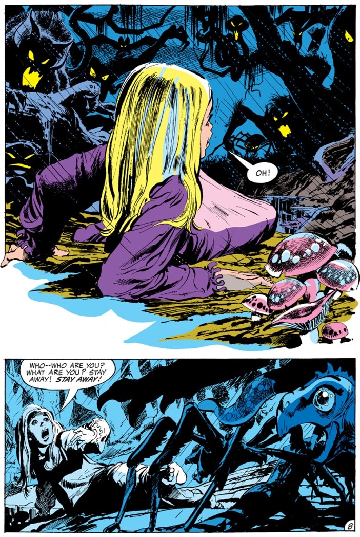 Written by Robert Kanigher and first published in May 1970’s House of Mystery #186 (which also includes another first-rate Bernie Wrightson tale, “The Secret of the Egyptian Cat”), this short chronicles a young girl’s journey into madness of the sort that would give even Lewis Carroll bad dreams. And yet, don’t be surprised if you find yourself tearing up a little at the end. A truly twisted rollercoaster of emotion.