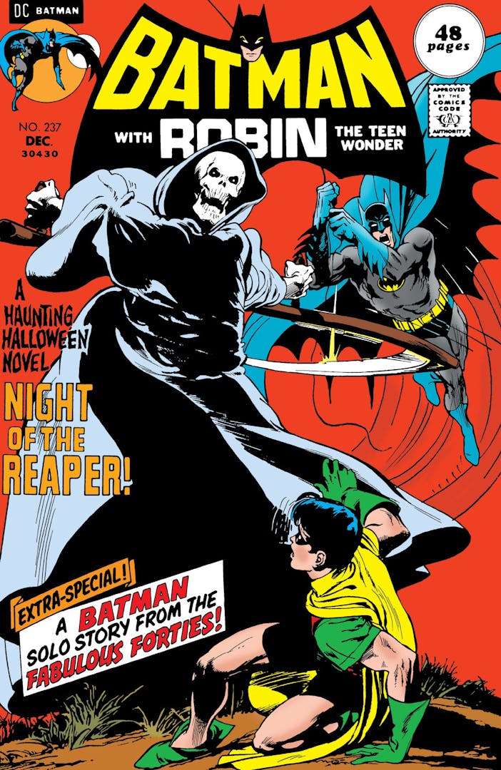 One of the finest stories created by the Caped Crusader’s team supreme—artist Neal Adams and writer Denny O’Neil—“Night of the Reaper!” (published in December 1971’s Batman #237) finds the Dynamic Duo embroiled in a series of murders in Rutland, Vermont during the town’s annual Halloween parade (inspired by the real town’s superhero-themed event frequented by comic creators). What begins as a supernatural-flavored thriller winds up with Batman facing the consequences of the worst kind of real world evil.