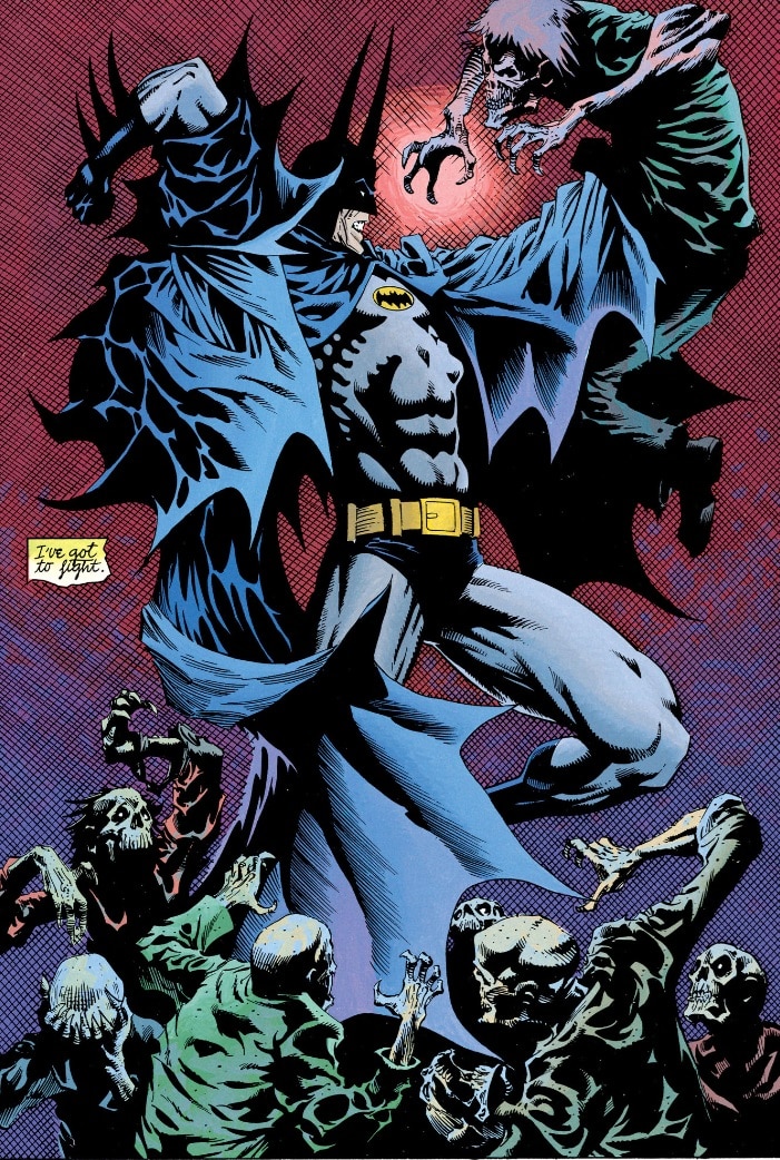 No regular Justice Leaguer lends themself to horror as well as the Batman. He’s starred in plenty of creepy graphic novels, one-shots and limited series, including The Killing Joke, Arkham Asylum, Gotham by Gaslight (featuring the father of all serial killers, Jack the Ripper) and, of course, The Long Halloween. But Halloween just isn’t Halloween without an appearance by the king of the vampires, Dracula. So let’s raise a glass of blood to celebrate Batman & Dracula: Red Rain, an Elseworlds classic that features Batman’s definitive encounter with Bram Stoker’s immortal count. Writer Doug Moench crafts a brisk, compulsively readable story, while artist Kelley Jones demonstrates why he’s the heir to Bernie Wrightson’s illustrative horror legacy. It’s followed by two sequels—Bloodstorm and Crimson Mist (both of which can be found in Batman: Elseworlds Vol. 2)—but the first one is essential…especially if you don’t know how it ends!