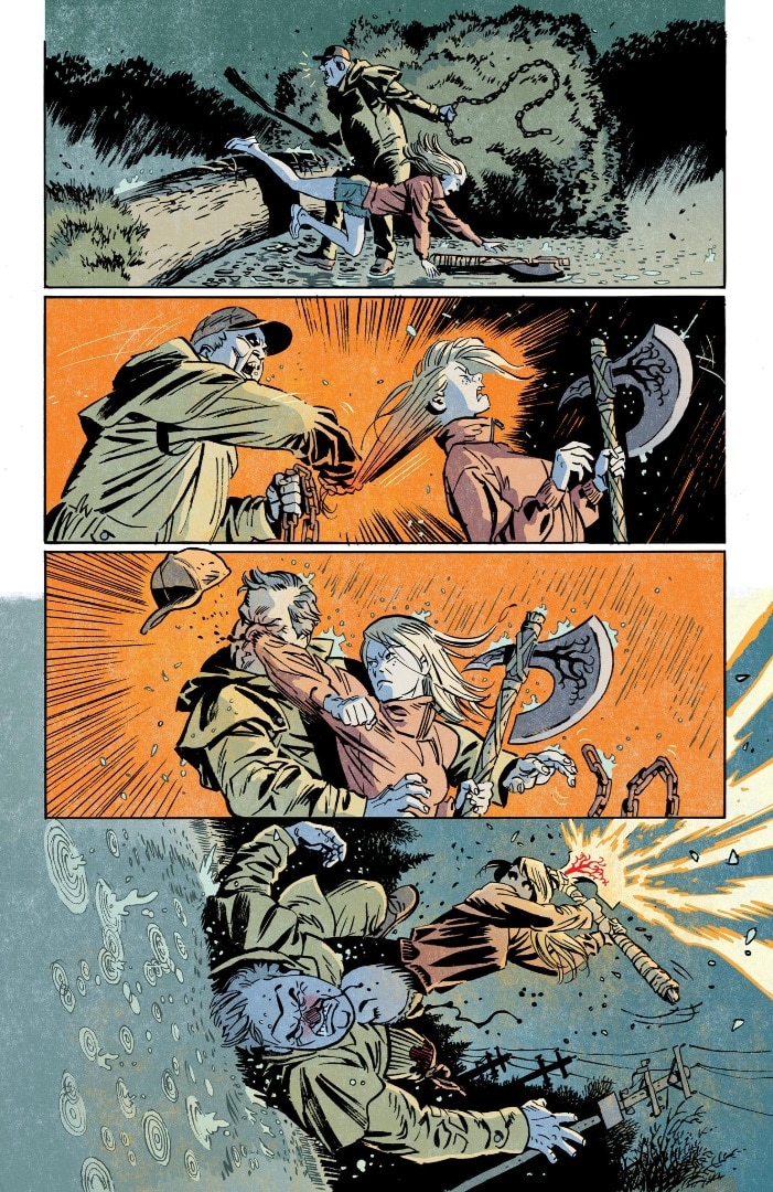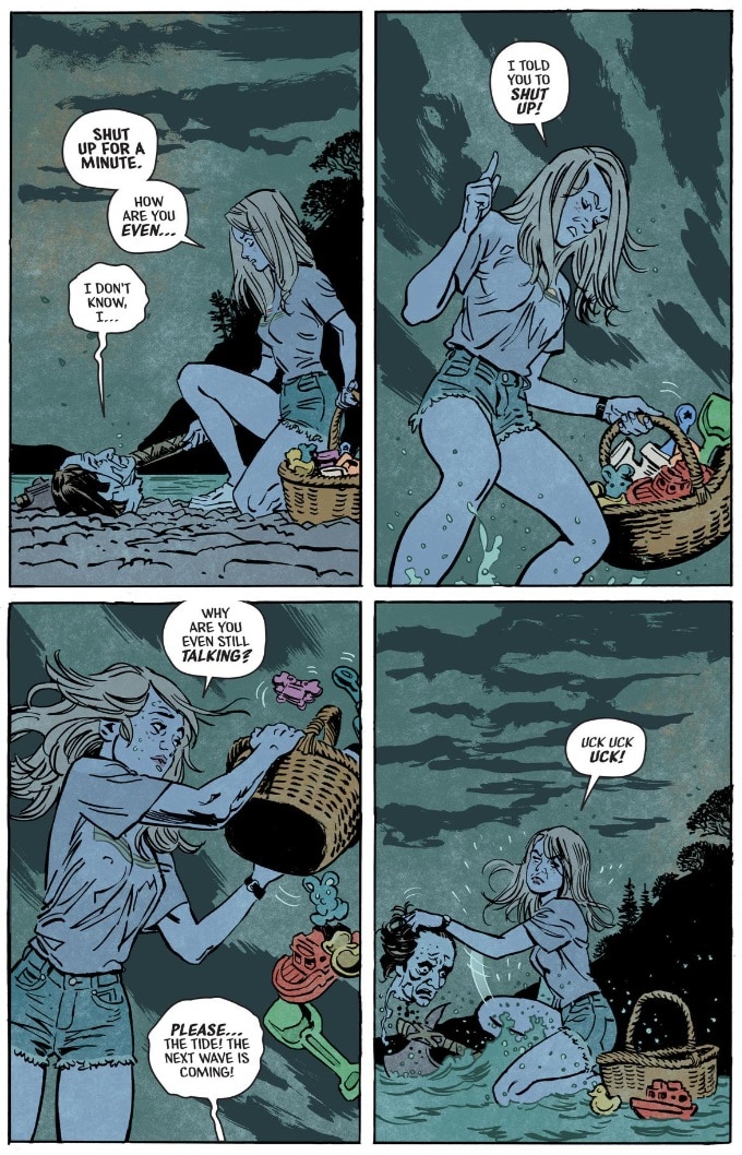 Joe Hill is a multi-medium horror writer known for The Black Phone and Locke and Key. His narrative and dialog here are both incredibly cinematic—this story will transport you straight to the rainy and mysterious Brody Island. Hill combines elements of a psychological thriller with the supernatural to create a unique premise that is perfectly executed. Because it reads like a horror movie, I’d say this is the perfect comic for horror fans who are new to comics!