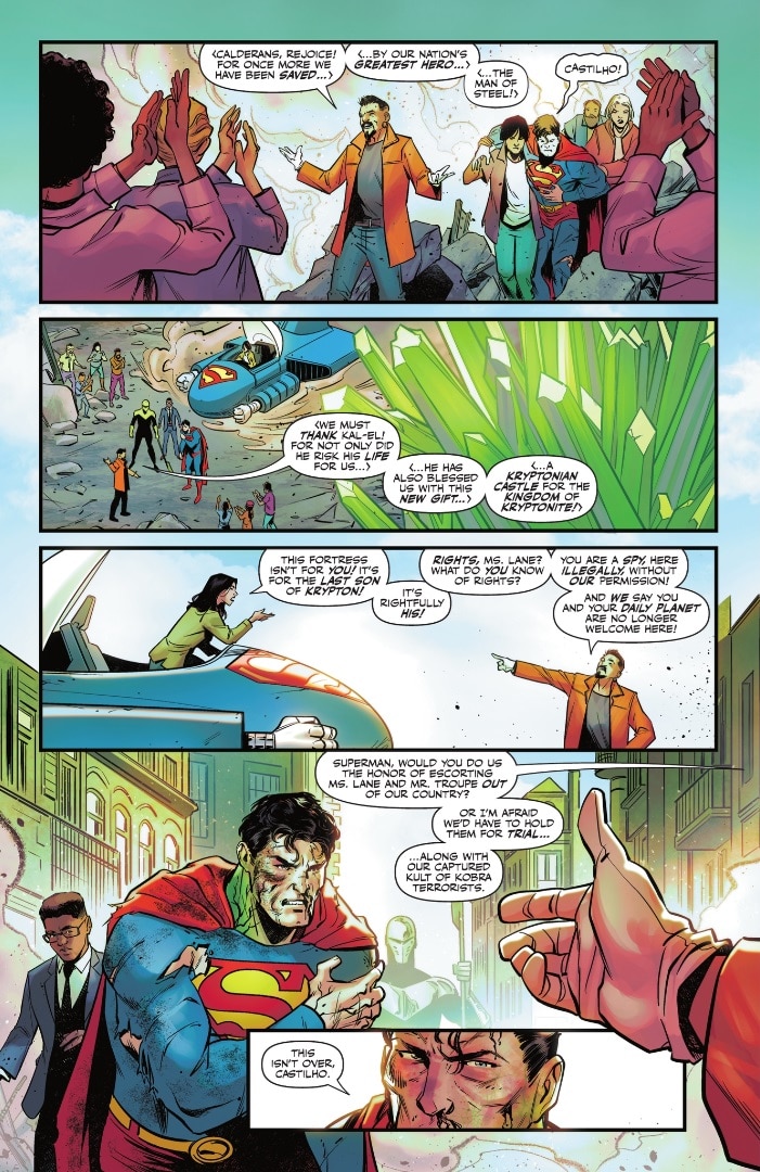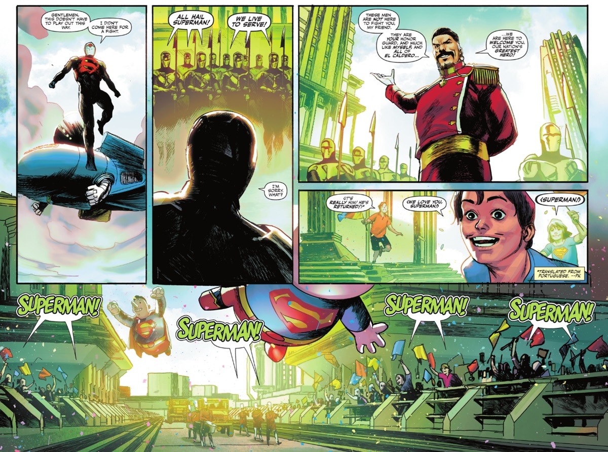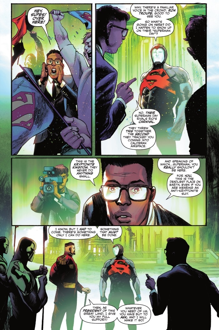 All of which is to say, Superman can’t fight his way out of this one. He’s not going to be able to successfully make the case that El Caldero is an enemy state—at least not yet. If that changes, it’s still hard to see everyday people believing that any use of force against it is necessary. And even if things evolve to where that somehow seems justified, the whole thing is complicated by the citizens of El Caldero being good people who believe in the very ideals that Superman champions.
