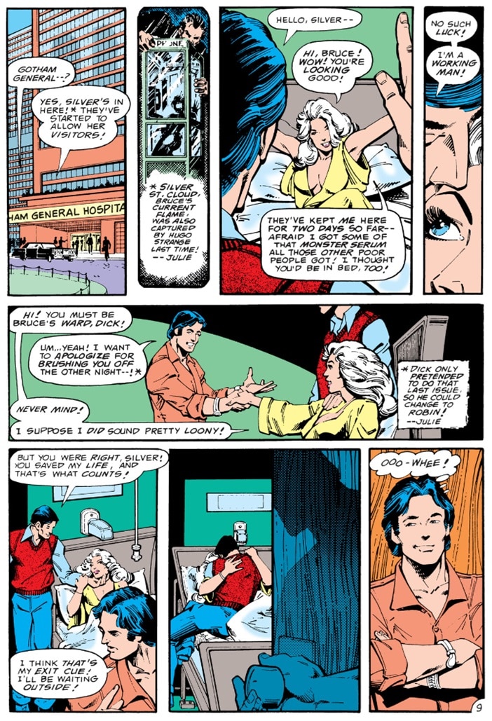 A lean, muscular, propulsive storyline, Batman: Strange Apparitions opens—much like the later “Knightfall”—with a Bruce Wayne weakened from battle, setting him up for defeat at the hands of one of his oldest foes, Professor Hugo Strange (unseen since December 1940’s Detective Comics #46). Strange drugs the Dark Knight, steals both Bruce Wayne and Batman’s identities, then auctions off his secret. Along the way he runs afoul of a new character—Gotham City councilman/crime boss Rupert Thorne. Batman survives to battle the Penguin and a reinvented Deadshot (who’d been MIA since 1950’s Batman #59). Then the Joker returns to Gotham, madder than ever, in Detective Comics #475’s unforgettable “The Laughing Fish.” The run climaxes with a battle between Caped Crusader and clown. Along the way, Bruce Wayne is depicted as having, for the first time, an actual sex life, and a new leading lady who’s his equal in spirit and intellect (a rarity in the comics of those days): Ms. Silver St. Cloud.