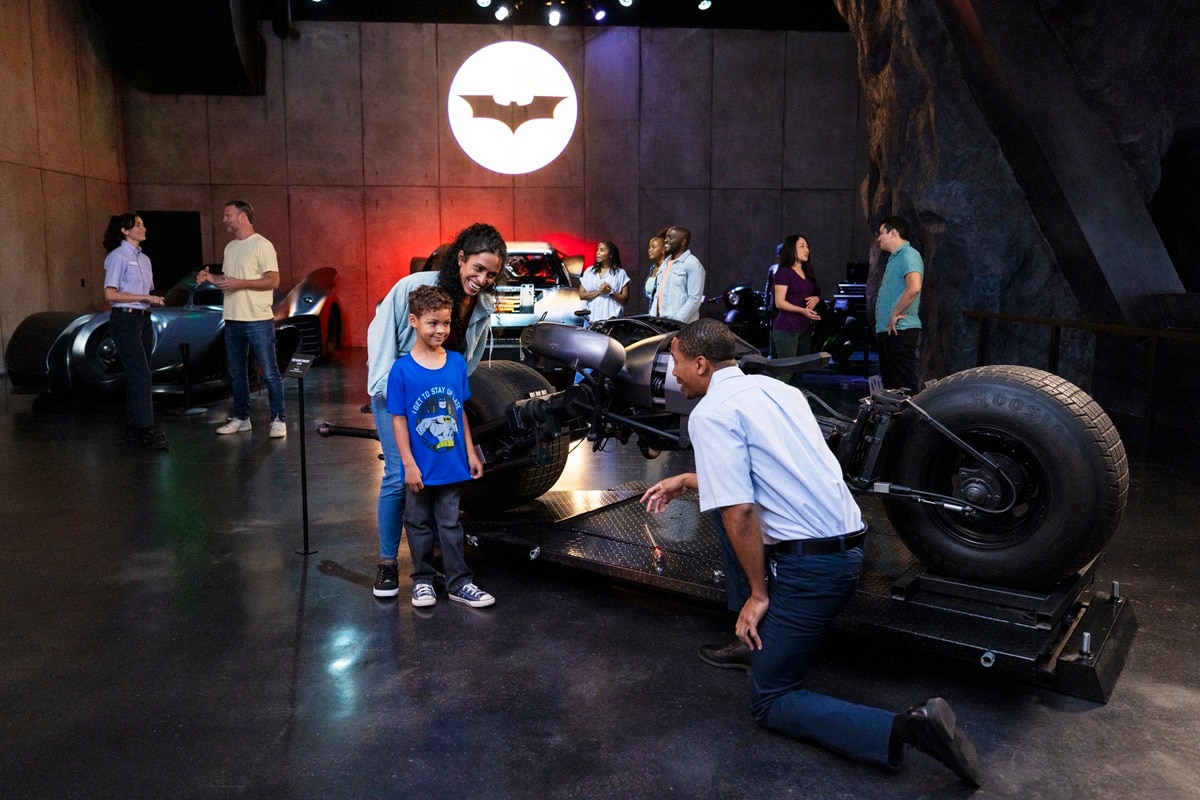 Perhaps the most jaw-dropping part of “Action and Magic Made Here” is the Batcave, which houses the original screen-used Batmobiles from the Batman movies starring Michael Keaton, Christian Bale and Robert Pattinson. Guests can also see the batsuits worn by every movie Batman starting with Keaton, peruse costumes worn by Batman villains like Heath Ledger’s Joker and Colin Farrell’s Penguin, and get immersed in a dramatic recreation of the Dark Knight’s legendary hideout that features many of his legendary vehicles coming and going…provided you watch for long enough.