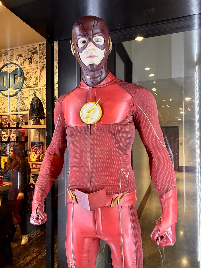 Studio Tour guests exit “Action and Magic Made Here” through the Warner Bros. Studio Store, filled with tons of unique merch. It’s also got one final treat for DC fans: the costumes worn by Melissa Benoist as Supergirl, Stephen Amell as Green Arrow, and Grant Gustin as the Flash in their fondly remembered Arrowverse TV shows.