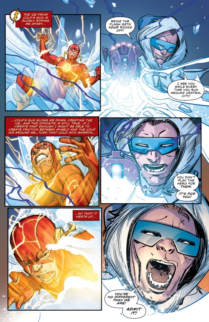 And then there’s the Flash. The Scarlet Speedster has historically battled against villains who weaponize cold, from the Golden Age of Jay Garrick vs. the Icicle to the classic archenemies of Barry Allen and Captain Cold, we’ve seen the Flash vibrate his molecules out of icy death traps numerous times. That doesn’t mean the Flash can’t become cold, however. His body is just as susceptible to freezing temperatures as anyone’s, it’s just that his immense speed gives him a powerful weapon against it.