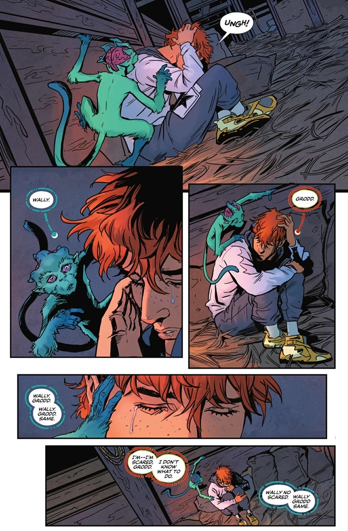 - Wally might be on the run, but he isn’t alone. The teen speedster is joined by a tiny green monkey named Grodd who communicates with him telepathically, and let’s face it, everything is better with monkeys.