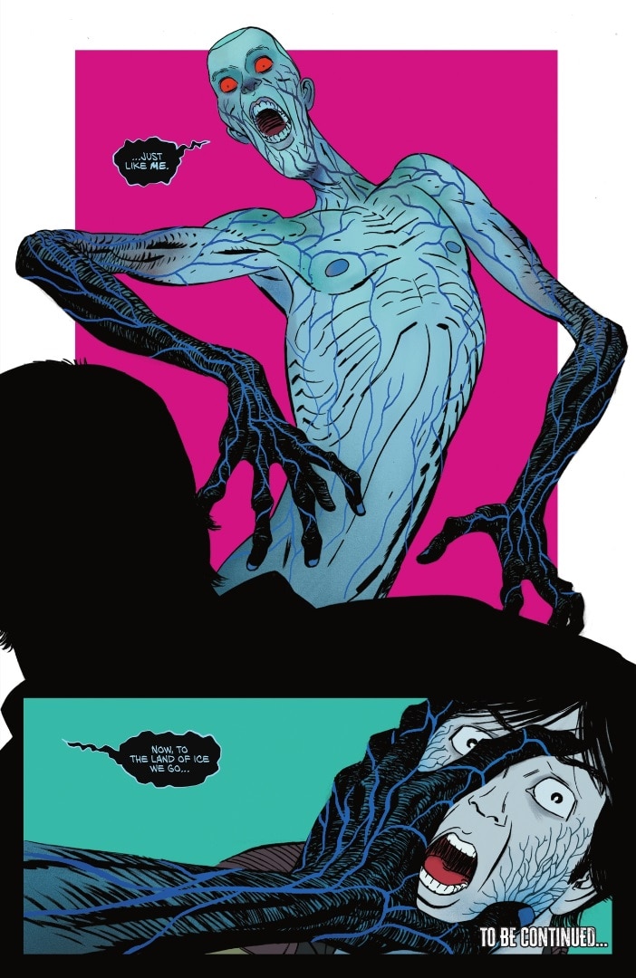 Freeze earned one of the very best post-Crisis origin stories in writer Paul Dini’s Emmy Award-winning Batman: The Animated Series episode “Heart of Ice” (later adapted to comics as the 1997 one-shot Batman: Mr. Freeze, collected in Batman Arkham: Mister Freeze). It would be damn near impossible to top the tragic backstory of cryo scientist Victor Fries, who, while seeking a cure for his terminally ill “frozen” wife, is doomed to live a life at subzero temperatures. Thankfully, Snyder and guest artist supreme Marcos Martín don’t even try. In the two-parter “Absolute Zero” (beginning in Absolute Batman #7), Batman tangles with Victor Fries Jr., a spindly, super-strong victim of cryotherapy gone wrong, who keeps his parents frozen while he works for the mysterious Ark M. He also commands an army of ice zombies.