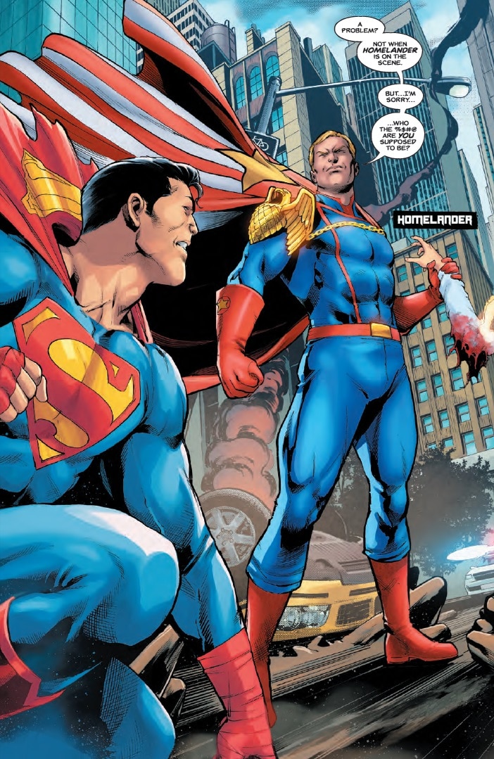 I’m not going to give a blow by blow of all the battles, because this is something you need to experience for yourself, but I think we need to touch on Superman’s meeting with Homelander. If you’ve been reading DC K.O., then you know that Superman has been battling with morality. As I wrote in a previous Come Out Writing, Superman is grappling with the fact that he may have to play dirty and compromise his morality in order to win. And winning here is important. If Superman loses, then the world is doomed and he won’t let that happen. But does that mean embracing a darker attitude?