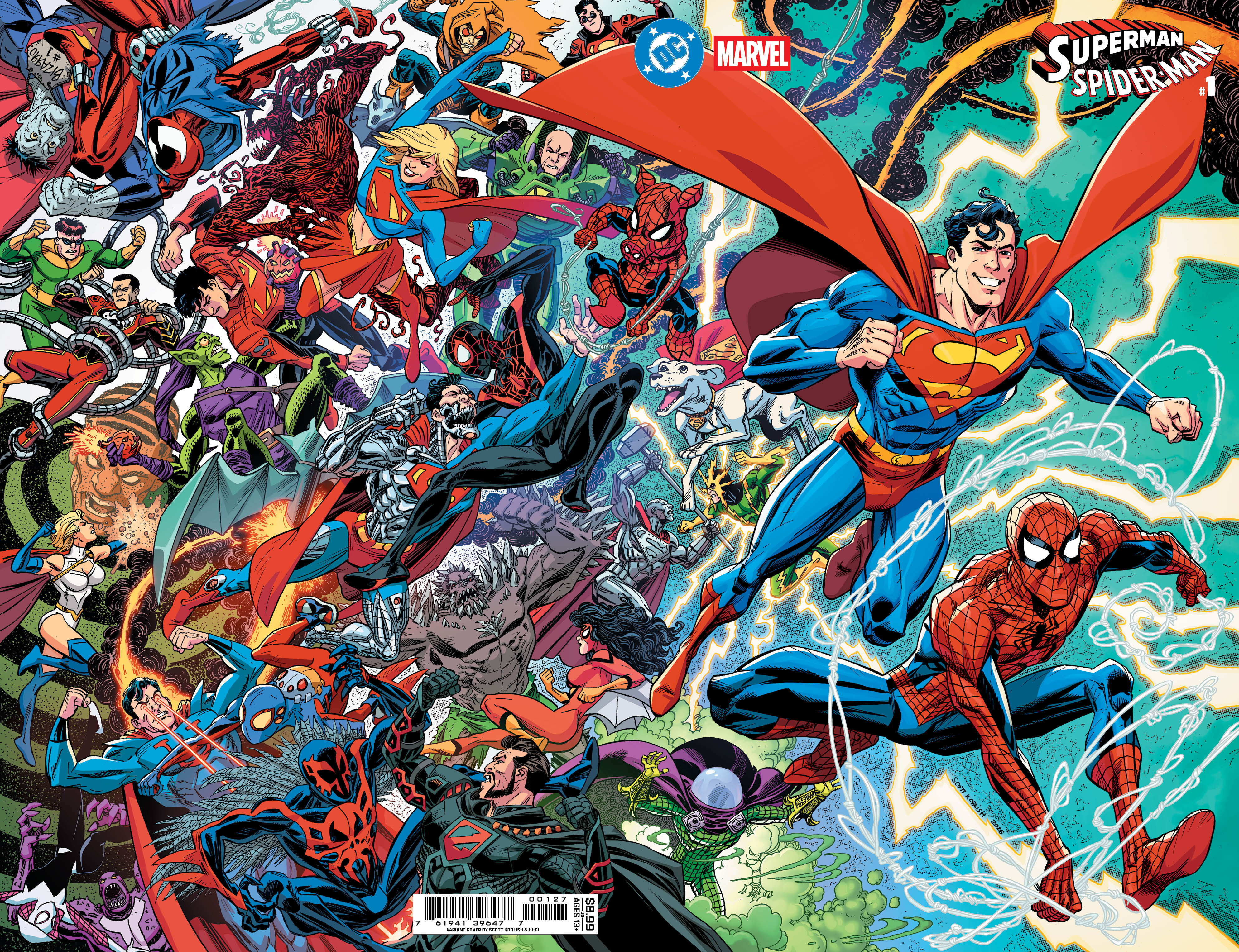 Superman/Spider-Man #1 wraparound variant by Scott Koblish and Hi-Fi, featuring Superman and Spider-Man, and more