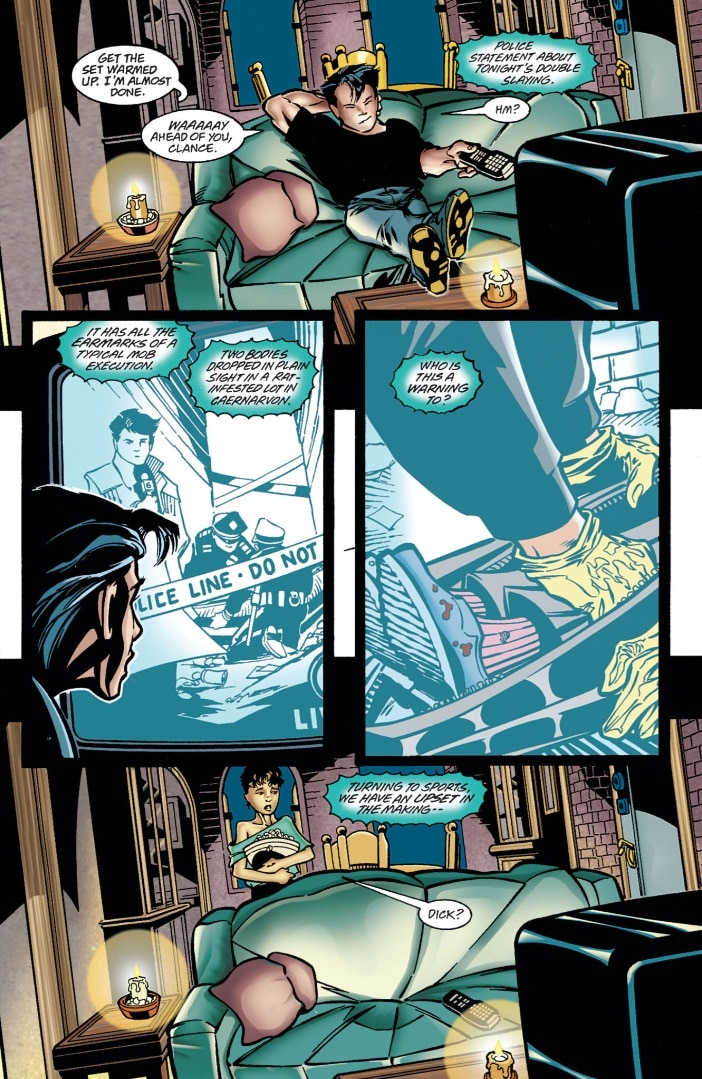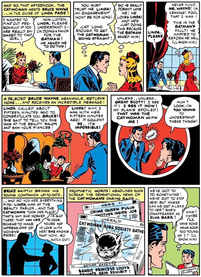 For example, in 1998’s Nightwing #26, Dick Grayson ditches his date Bridget Clancy midsentence while she turns around, which is pretty rude. This was probably learned behavior, because his mentor Bruce Wayne has done his fair share of ditching dates. In 1942’s Detective Comics #69, Bruce abandons his date Linda Page on a broken Ferris wheel to go do Batman stuff. This leads us to our next tip…