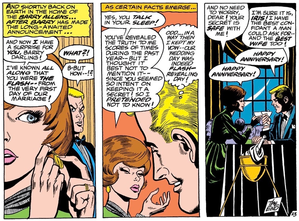 Getting married doesn’t make things more defined either. In 2011, Superman was married to Lois Lane and the Flash was married to Iris West, but the events of Flashpoint shifted the timeline, and when DC began its New 52 publishing initiative, both marriages were erased. No, they didn’t divorce, everyone was just single again.