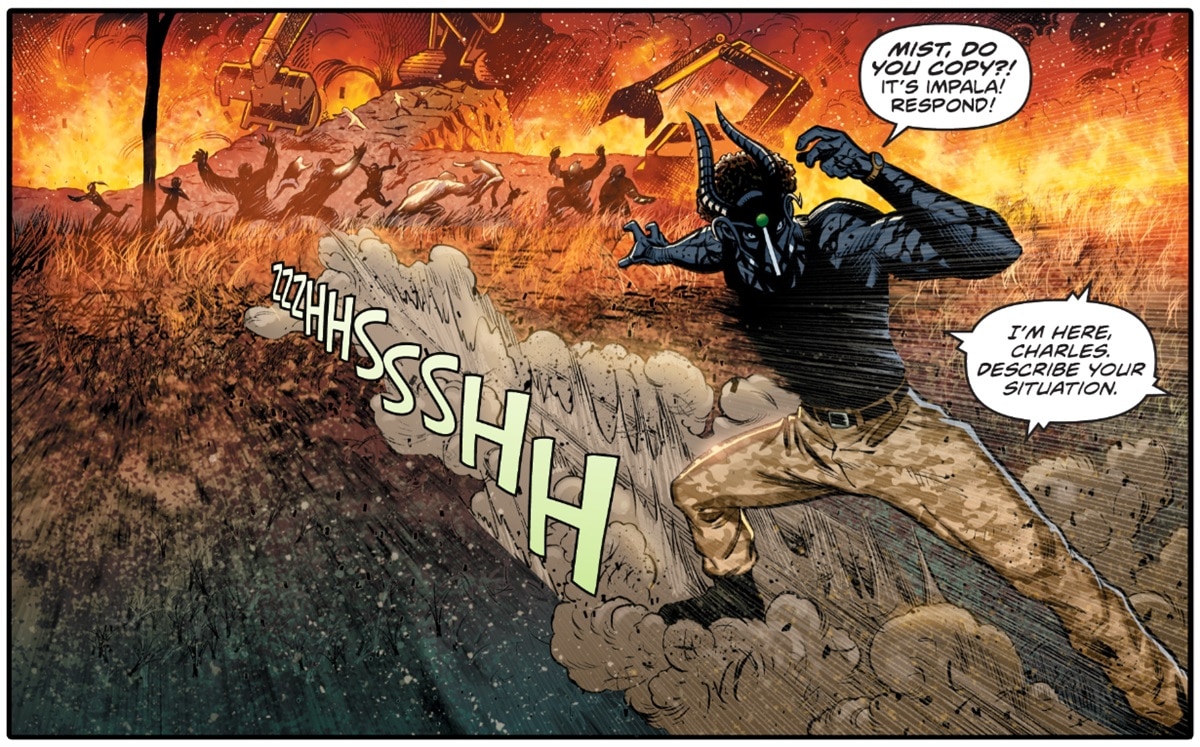 Introduced earlier in Super Friends than Doctor Mist, but lesser known today, the Zulu speedster Impala officially represented South Africa in the Global Guardians. Impala was one of the heroes killed off-panel in Roulette’s Meta Brawl competitions in the early 2000s JSA series, and was for a time succeeded by a younger Kid Impala in Grant Morrison’s Ultramarine Corps. But as of the 2021 Truth & Justice series, the full-grown Impala is back in business, a stalwart ally of Doctor Mist and our next hero.