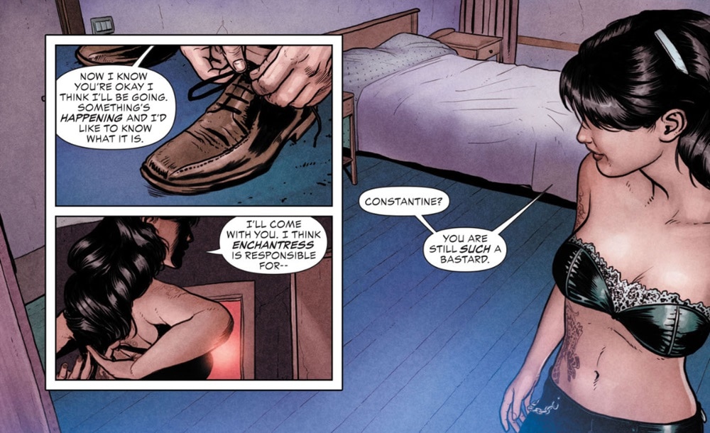 I was just reading the New 52’s Justice League Dark and in issue #3, Zatanna has a tattoo. Issue #0 of the same series shows that Zee and Constantine got tattoo markings from Nick Necro as a way of summoning them in case Nick gets caught in some danger. Could this tattoo also be Necro's handiwork, or is that only the shoulder part? If it’s the shoulder, then what is the issue #3 tattoo? Has it ever appeared before or after this run?