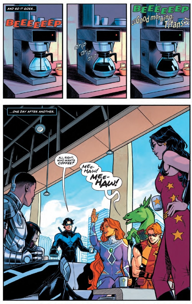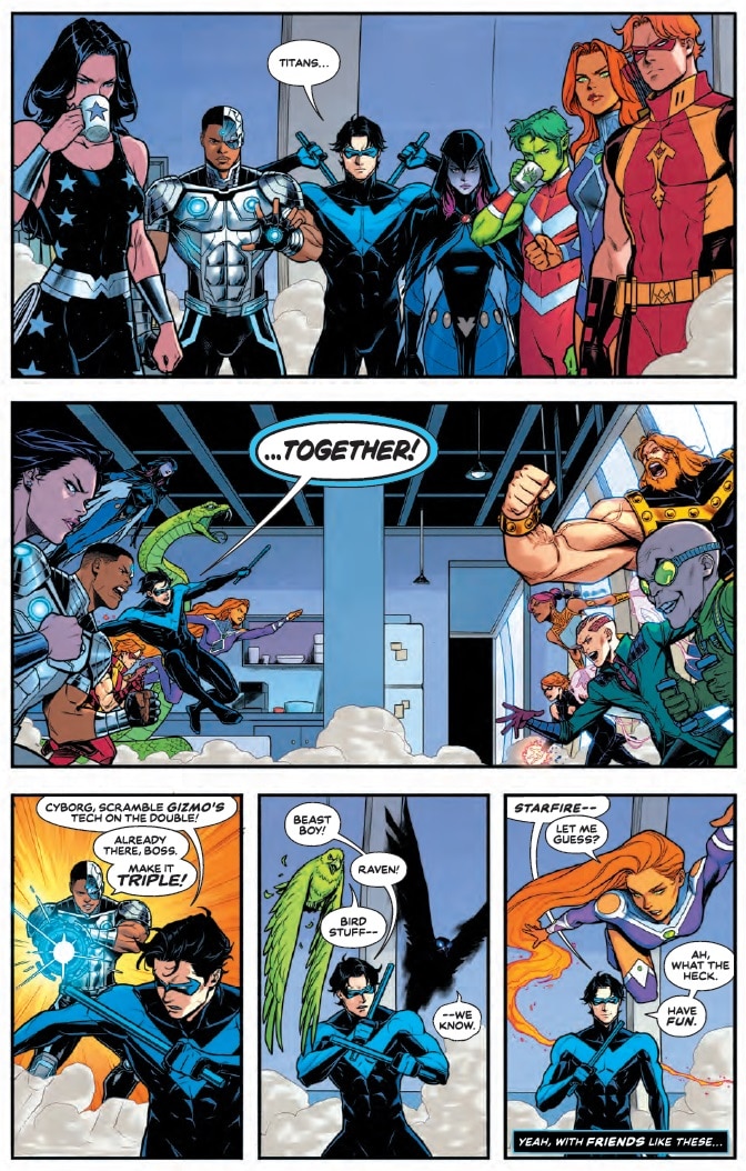 New Titans #33, in classic Titans fashion, includes funny, character-driven, slice of life moments with fast-paced, high-stakes action. How do you find that perfect balance and signature Titans tone?