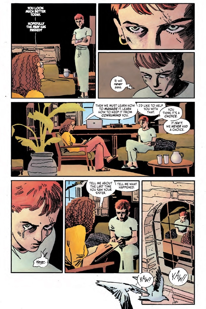 Yeah, it’s definitely darker than Elegy, simply because this is the coda to Elegy. The arc is called “Eschatology,” because let's use great big words that people will have to look up. But it is a question of what is life after those things. That's what it is. Because this arc is very much about that initial trauma. It's about Kate and her sister being abducted when they were 12 and what happened to each of them as a result. We know what happened to Kate. We don't really know what happened to Beth. We don't really understand, and then she's kind of forgotten. I was like, “Yeah, you know what? I'm just not doing that.” This was the story I wanted to tell about them.