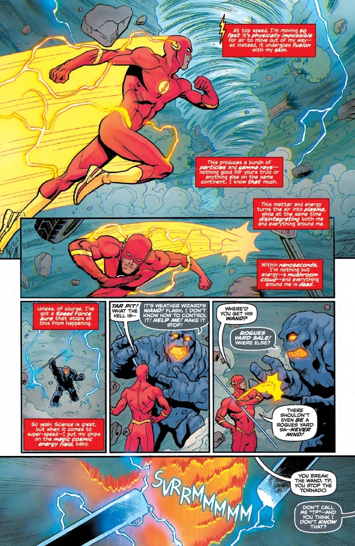 So, this is the joy and the challenge of writing The Flash. So many of the ideas you have boil down to either the Flash runs too fast, or the Flash can’t run fast enough. I feel like those stories have been told a million times. We’ve seen them. Not that they’re bad stories. I love a story where the Flash needs to run faster than he’s ever run before. The challenge is what else can you do with this guy? How do you come up with a story that can’t be solved by being fastest?