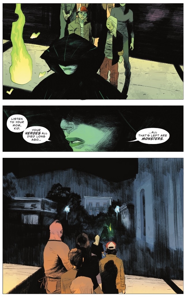 On writing duties we have Tate Brombal, known for House of Slaughter, Batgirl and most recently, New Titans. Brombal crafts an incredibly unique world with new Green Lantern lore set in a disturbing and all-encompassing apocalypse unlike any other I have seen. Brombal is no stranger to excellent world building considering he helped craft the lore of BOOM’s Something is Killing the Children. The dialogue in Green Lantern Dark? Flows like water. The emotional gravity? Out of this world. The stakes? Couldn't be higher. I could go on and on, but I really should get to this book’s amazing artist.