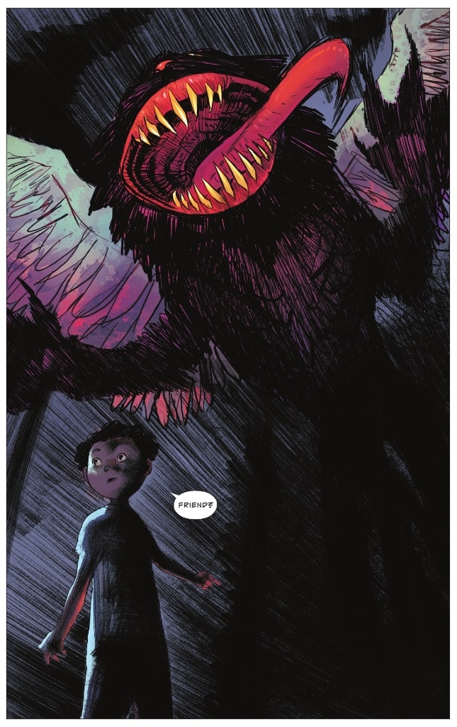 The would be none other than Werther Dell’Edera, the co-creator of Something is Killing the Children and prolific cover artist. His work seemingly draws inspiration from manga and animation and is uniquely distinct, adding to the often surreal tone of Green Lantern Dark. The facial expressions? Outstanding. The designs of the monsters? Unreal! The set designs? Masterful. Dell’Edera’s visual worldbuilding pairs perfectly with Brombal’s script, which is amplified and brought to life further by Giovanna Niro’s incredible color palette. This creative team is a match made in heaven…or hell!