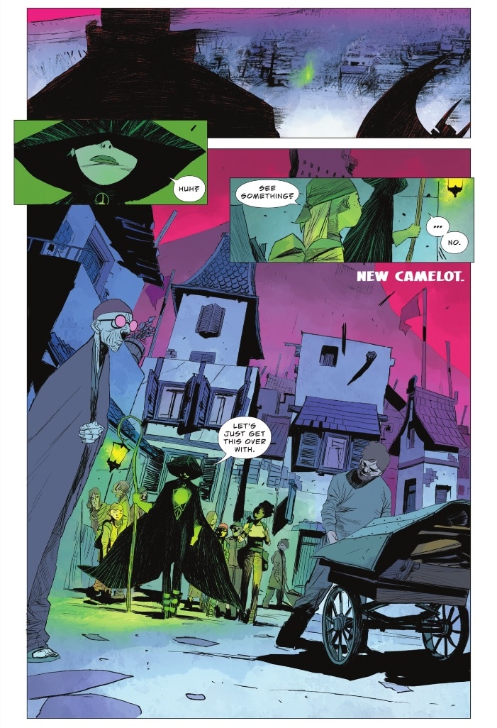 - A unique take on the Green Lantern mythos: In the mainline DC Universe, you typically associate Green Lantern with the science fiction genre. Think clean-cut bright green constructs and grandiose space travel in the modern day. Green Lantern Dark takes the imagery and themes of the corps and goes crazy with it. Rina Mori, the Green Lantern of this world, looks a lot like a witch shrouded in a black, hooded cloak, wielding an antique lantern that hangs from a wooden staff. Her powers are referred to as “wishes” or “spells” powered by willpower and are visually similar to magical powers you’d see in a fantasy setting. This is a bold and unique take on Green Lantern lore, which is why I love Elseworlds so much!
