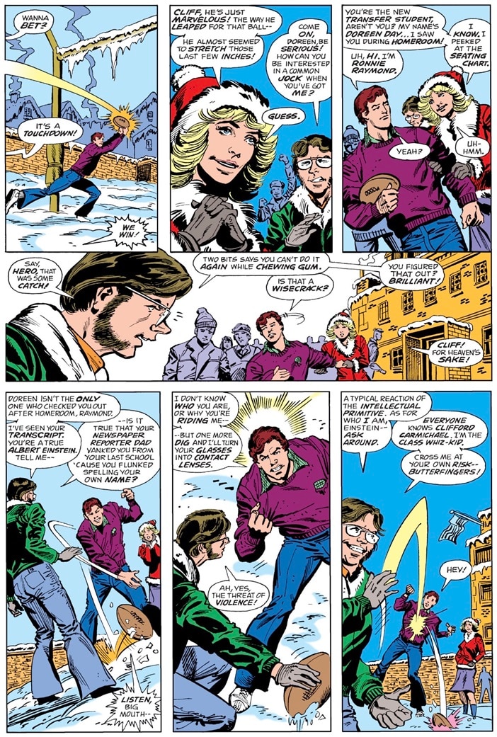 When Gerry Conway and Al Milgrom created Firestorm for 1978’s Firestorm: The Nuclear Man #1, they wanted to flip the usual teen superhero trope on its head. Most stories about teen superheroes present the protagonist as a nerd or social outcast, and they’re usually tormented by a dimwitted popular jock. Although Ronnie Raymond isn’t a bully, Conway looked to high school bullies for inspiration and said that he wanted to use the character to explore another angle of the teen superhero genre.