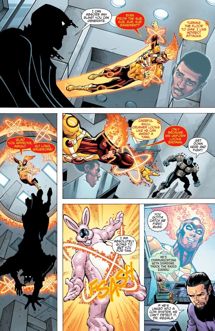 This type of behavior wouldn’t fly today, which is why Ronnie replaced Skull Crusher’s uniform with a bunny costume in 2012’s The Fury of Firestorm: The Nuclear Man #14. It’s one of the things that makes Firestorm unique. Seriously, imagine Batman randomly undressing Bane or placing Killer Croc in a bunny suit.
