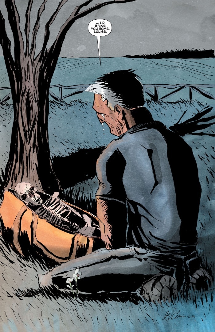 What do I expect? I expect the human condition reflected back at me in true Jeff Lemire-fashion. I doubt humans have gotten it together in a post-apocalyptic setting, so I wager I’ll see some corruption and some prejudice against these hybrid children. I also expect some disturbing reactions to the apocalypse—groups of lawless people doing heinous things in the wasteland. I believe Gus is an orphan, and for some reason I’m imagining the trope of a grumpy apathetic man protecting a kid and then developing a paternal relationship with said kid. Think Logan or The Last of Us.