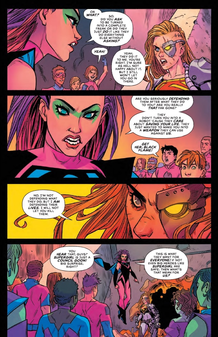 Adding further fuel to the flame is that no one on the science council is affected by the anomaly. They’re all free to leave Kandor if they want to. It’s only the youngest Kandorians who are affected, and they’re…well, pretty pissed off.