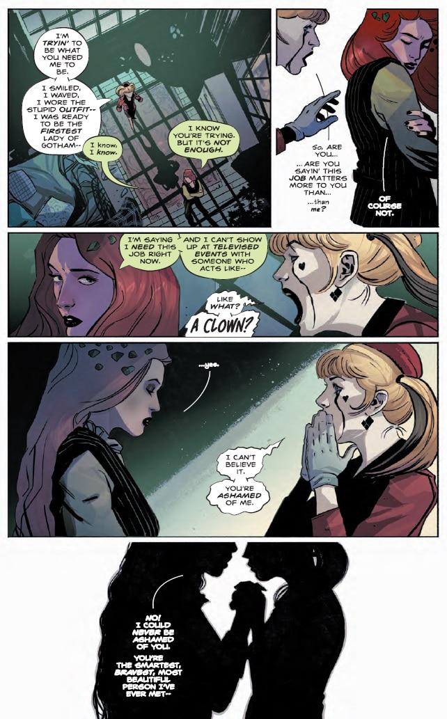 Say it ain’t so! Alas, loath as I am to be the bearer of such heinous news on my maiden Dish, but as of now, Gotham’s hottest supervillain it-couple is no more. The rumor on the political circuit is that Gotham’s new mayor Pam Isley dropped her beau like a sack of mallets, just so she wouldn’t sink her political aspirations. (But will she live up to the sacrifices she made to get there? You’ll have to follow the roots in Poison Ivy.)