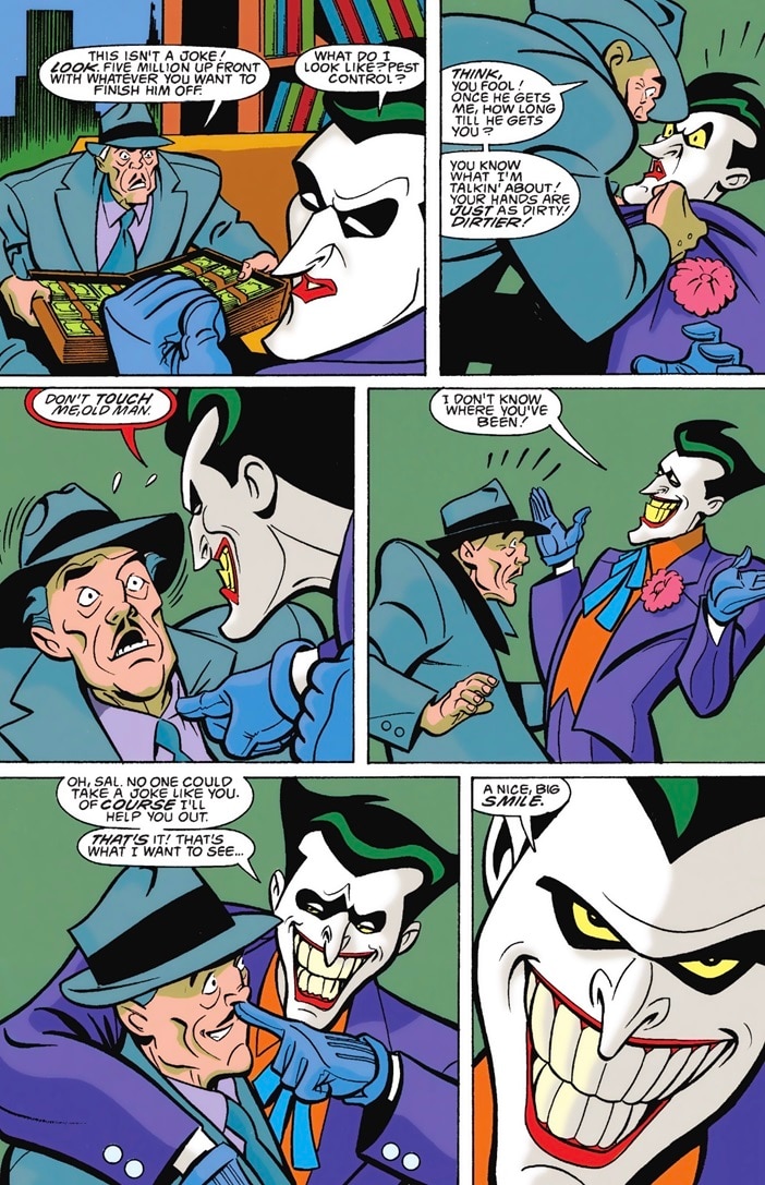In the Batman Animated Universe, Sal Valestra was a crime boss who had used Jack Napier as a hitman before he transformed into the Joker. During Batman: Mask of the Phantasm, various members of Sal’s old criminal organization begin getting murdered one by one, and Sal suspects that Batman is behind it. (In reality, the murders are being committed by the titular Phantasm.) Fearing for his life, Sal approaches his old associate Joker, reasoning that if anyone could take Batman on, he could do it.