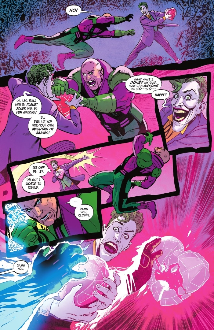 In 1990’s World’s Finest, Joker targets Lex’s business as revenge for reneging on their partnership. In 2008’s Salvation Run, Joker turns on Lex and gives him a severe beating. In 2024’s Batman/Superman: World’s Finest #25, Joker betrays Lex during a heist for the Heart of Eternium. Do you need more examples, because I could go on for another 1,000 words.