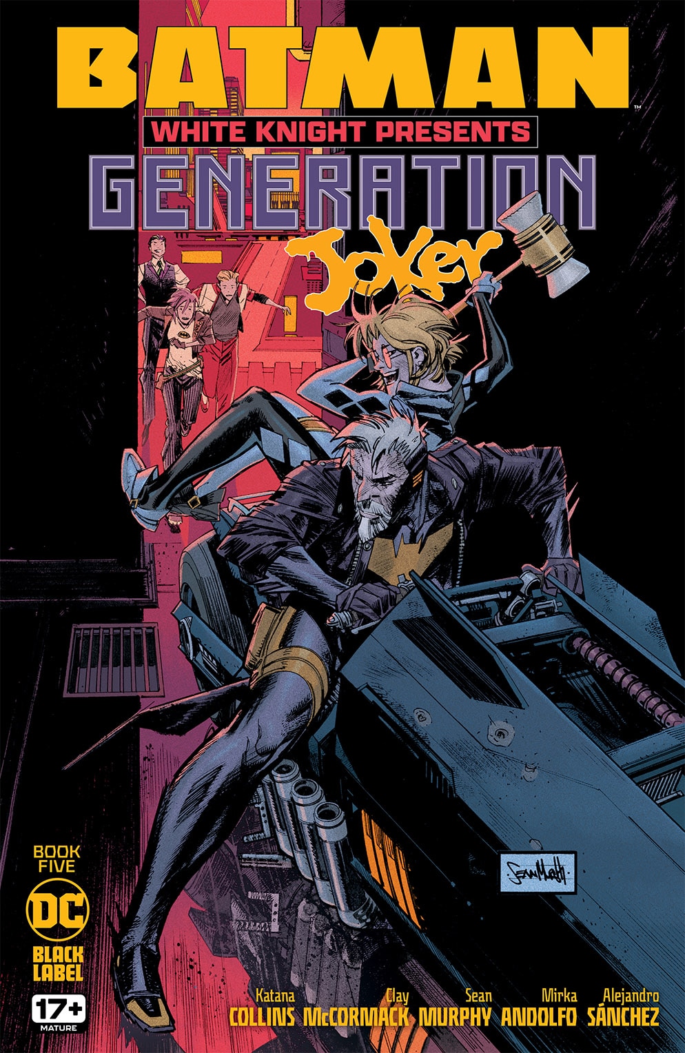 Spinning out of the runaway hit Batman: Beyond the White Knight comes an unforgettable coming-of-age super villain tale starring the children of Harley Quinn and The Joker! When the rebellious twins run away in a stolen Batmobile, only Joker Jack Napier’s quickly fading hologram has any hope of getting them home safely and keeping them out of the family business. But a life of crime isn’t the only temptation they are facing: the kids uncover a dark secret that could bring their dad back to life for good! With a wild array of Batman’s former enemies and allies on their tails, will the kids succeed in reviving the Dark Knight’s greatest foe? Find out as Jackie and Bryce take center stage in the White Knight Universe!